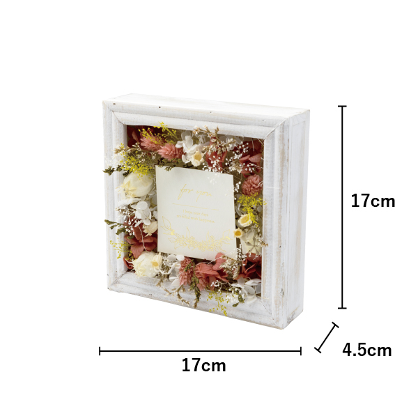 | 内容 | ドライフラワー、プリザーブドフラワー、杉、紙、スチール |
