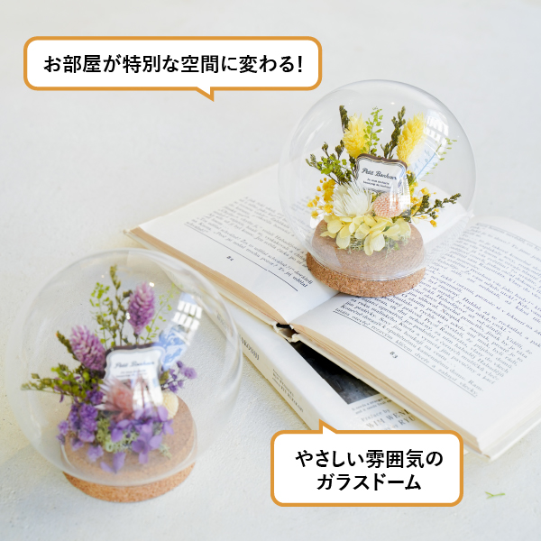 | 内容 | ドライフラワー、プリザーブドフラワー、ガラス、コルク |