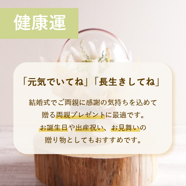 自立するためインテリアとしてもお使いいただけるおしゃれなデザイン。挙式後も長く飾って楽しむことができるので、想い出に残るお祝いギフトになります!健康運UPのグリーンカラーは大切な方への贈り物にも最適です。