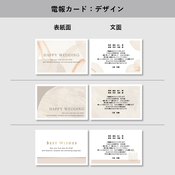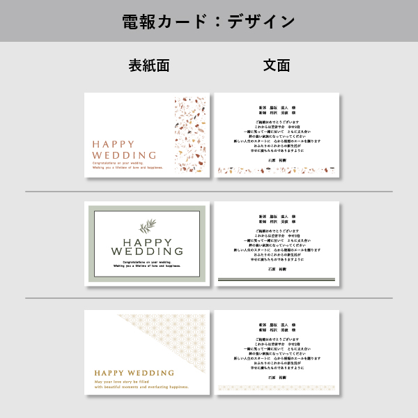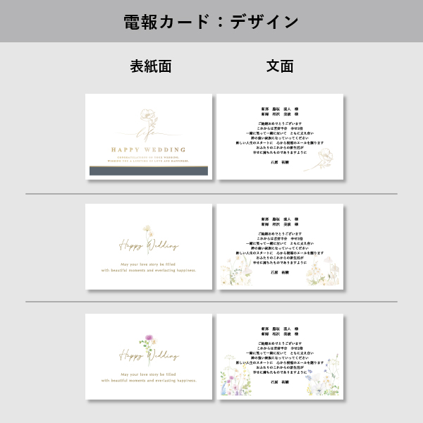 | 無料特典 | 電報カード 9種のデザインからお選びいただけます。 ※カードサイズ:縦100×横148mm |