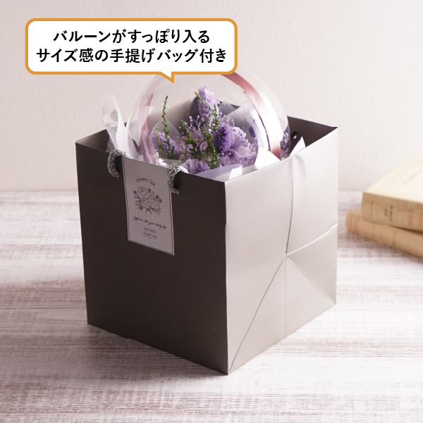 サプライズギフトにおすすめ!写真映え抜群でインパクトのあるパープルカラーのバルーンブーケフラワー電報です。