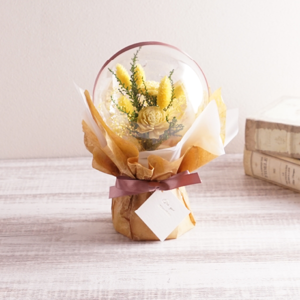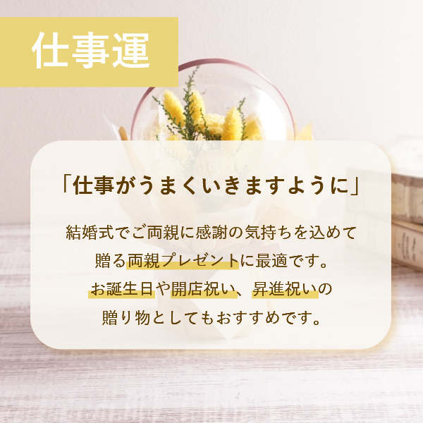 自立するためインテリアとしてもお使いいただけるおしゃれなデザイン。挙式後も長く飾って楽しむことができるので、想い出に残るお祝いギフトになります!仕事運UPのイエローカラーは大切な方への贈り物にも最適です。