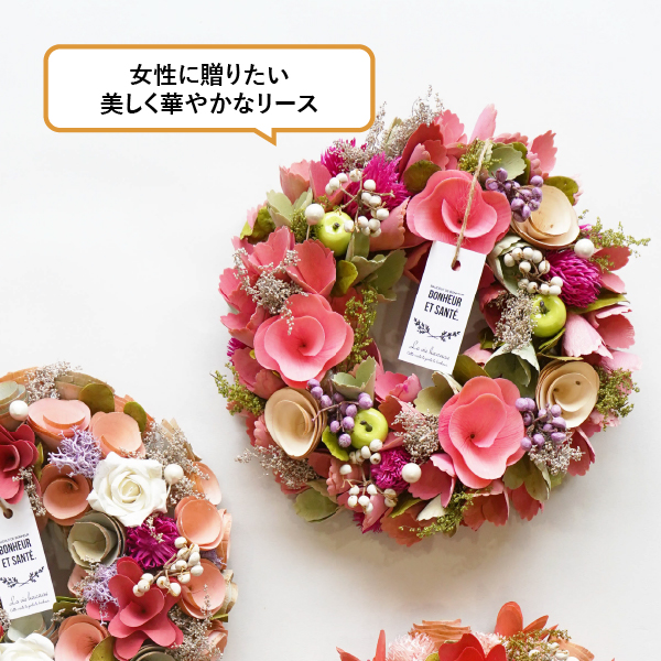 リースは切れ目がなく、始まりも終わりもない円の形をしていることから、「永遠」の意味を持ち、結婚式にはぴったりの贈り物です。ベルリースは、挙式後も長く飾って楽しむことができるので、想い出に残る記念品に!ウェディングから毎日のインテリアまで、季節を超えて楽しめるアイテムです。