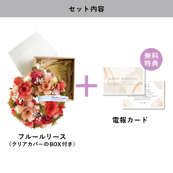 「二人の幸せが永遠に続きますように…」と願いを込めて贈る、華やかなフルールリース電報です。