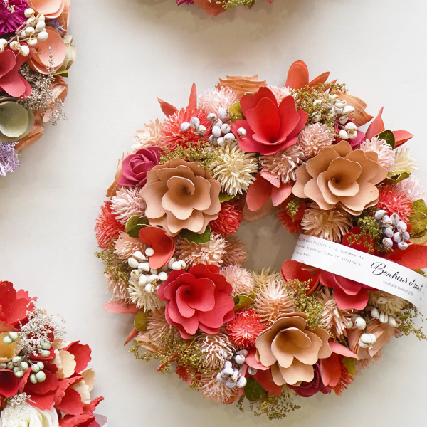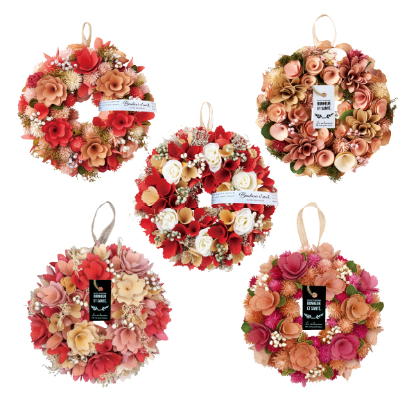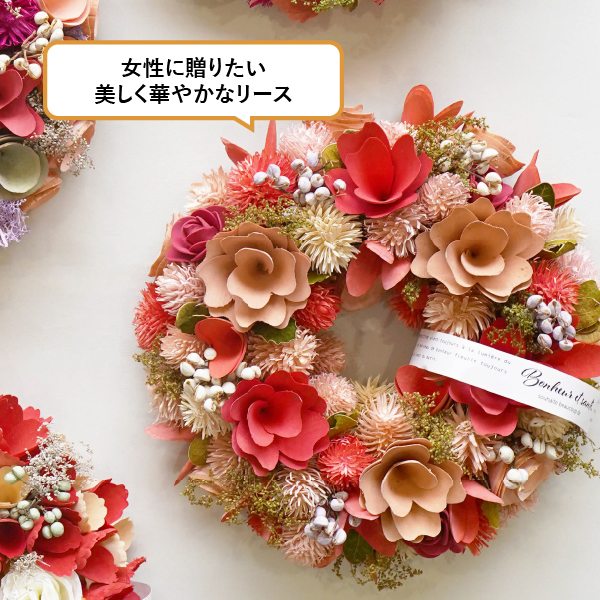 リースは切れ目がなく、始まりも終わりもない円の形をしていることから、「永遠」の意味を持ち、結婚式にはぴったりの贈り物です。フルールリースは、挙式後も長く飾って楽しむことができるので、想い出に残る記念品に!ウェディングから毎日のインテリアまで、季節を超えて楽しめるアイテムです。