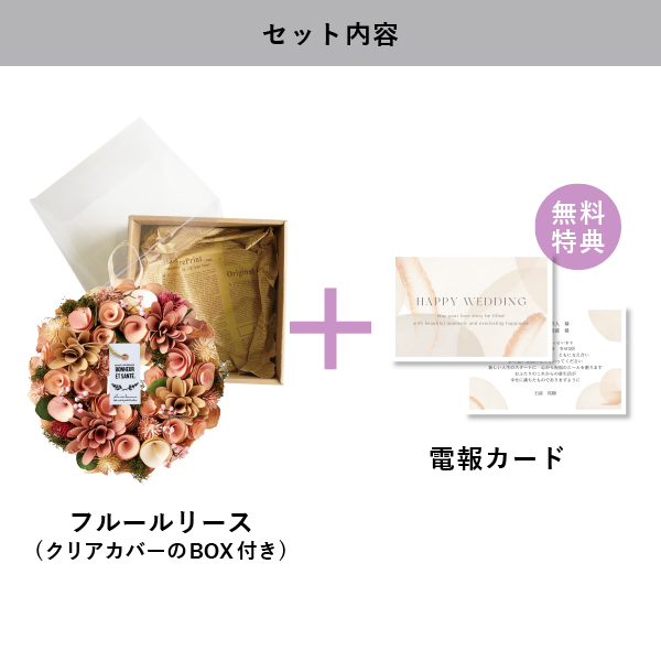 「二人の幸せが永遠に続きますように…」と願いを込めて贈る、華やかなフルールリース電報です。