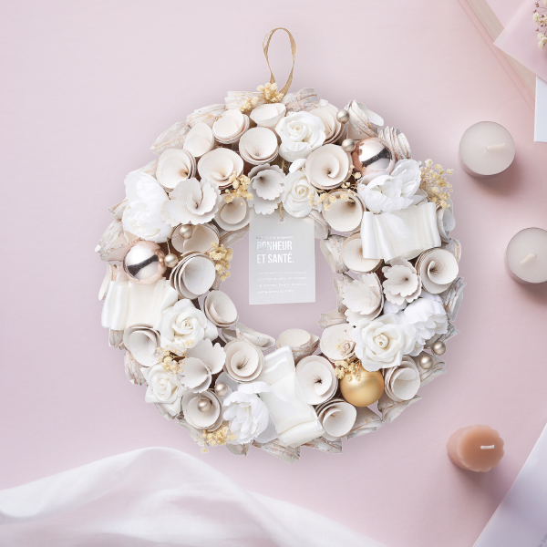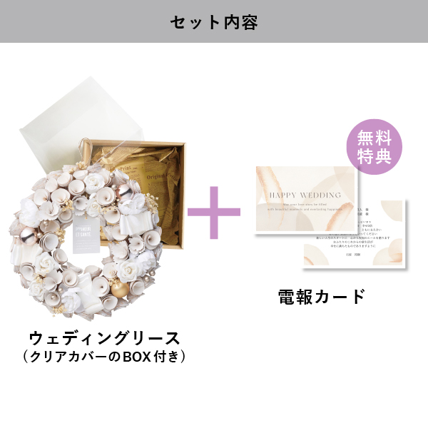 「幸せがずっと続きますように…」と願いを込めて贈るオリジナルカード付のフラワー電報です。存在感のあるサイズが華やぐ高級感のあるホワイトリースです。リースは切れ目がなく、始まりも終わりもない円の形をしていることから、「永遠」の意味を持ち、結婚式にはぴったりの贈り物です。挙式後も長く飾って楽しむことができるので、想い出に残るお祝いギフトに!季節を超えて楽しめるアイテムです。