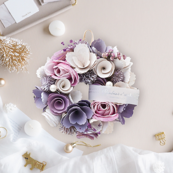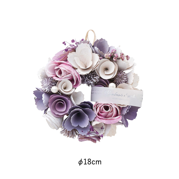 「幸せがずっと続きますように…」と願いを込めて贈るオリジナルカード付のフラワー電報です。ころんとしたコンパクトサイズが大人の女性に喜ばれる、上品でかわいいパープルピンクのリースです。リースは切れ目がなく、始まりも終わりもない円の形をしていることから、「永遠」の意味を持ち、結婚式にはぴったりの贈り物です。挙式後も長く飾って楽しむことができるので、想い出に残るお祝いギフトに!季節を超えて楽しめるアイテムです。
