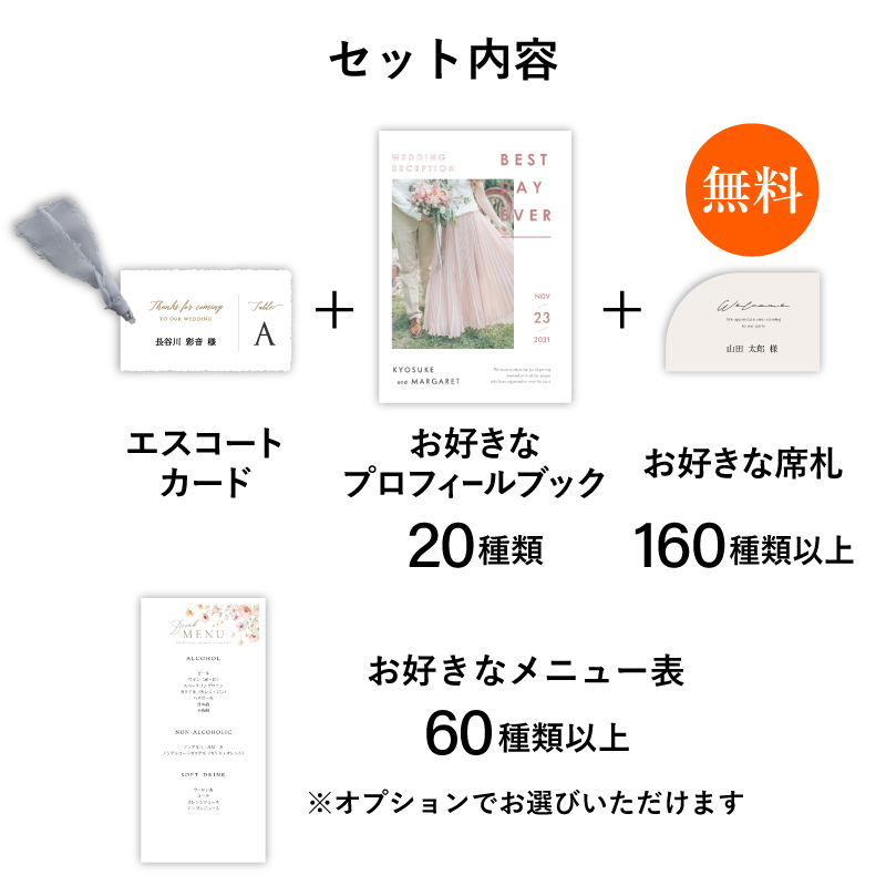 プロフィールブックにメニュー等も入りますが、メニュー表を別に作成すると、ゲストのテーブル演出をランクアップできます。