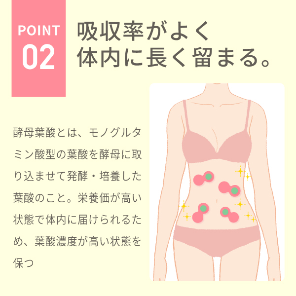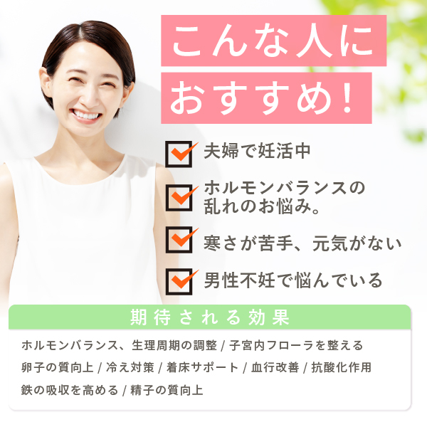マカ・イソフラボン・コエンザイムQ10・ラクトフェリン・和漢素材などを配合した妊活専用葉酸サプリ。