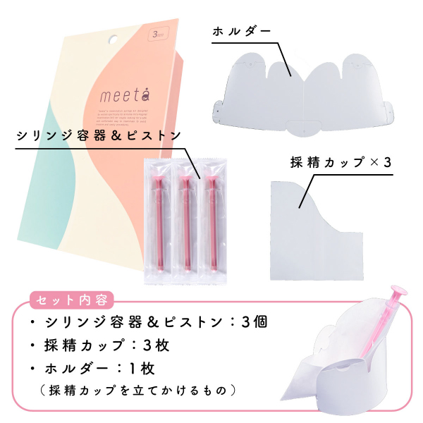 | 内容物 | ・シリンジ容器&ピストン:3個 ・採精カップ:3枚 ・ホルダー:1枚 |