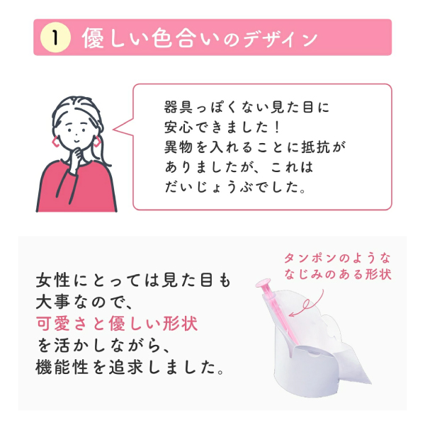 ・やさしいピンク色で器具っぽさを感じさせない容器です。