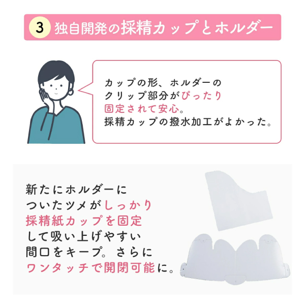 ・男性も安心!精液を採取しやすさを考えた、間口の広い紙カップを採用しています。