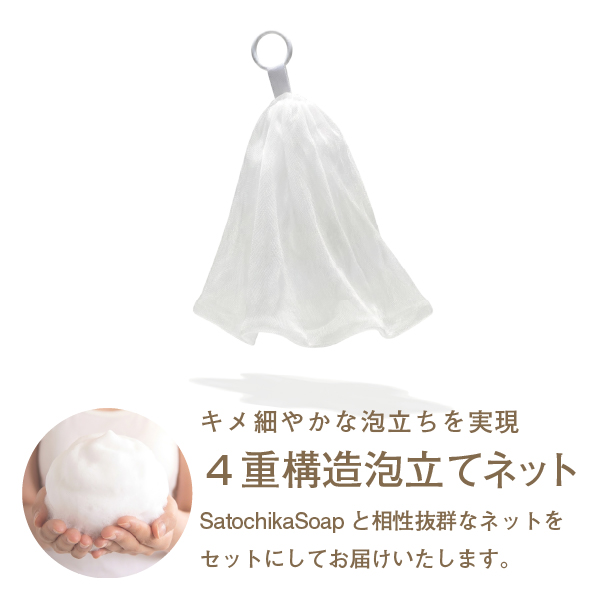 | 内容物 | Satochika Soap 「菜の花」100g×1個 国産プレミアム4重泡立てネット×1個 |