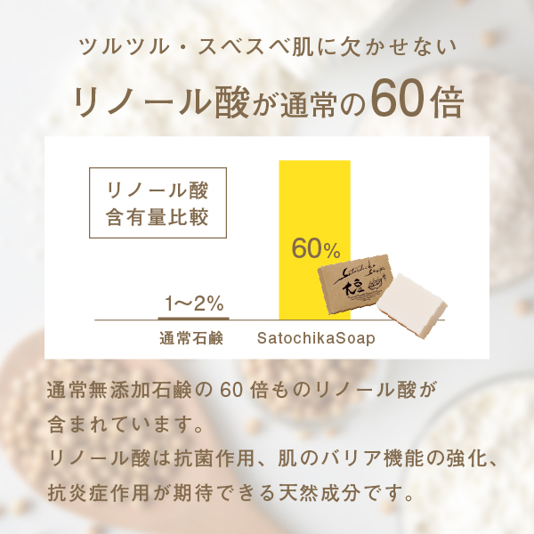 | 内容物 | Satochika Soap 「大豆」100g×1個 国産プレミアム4重泡立てネット×1個 |