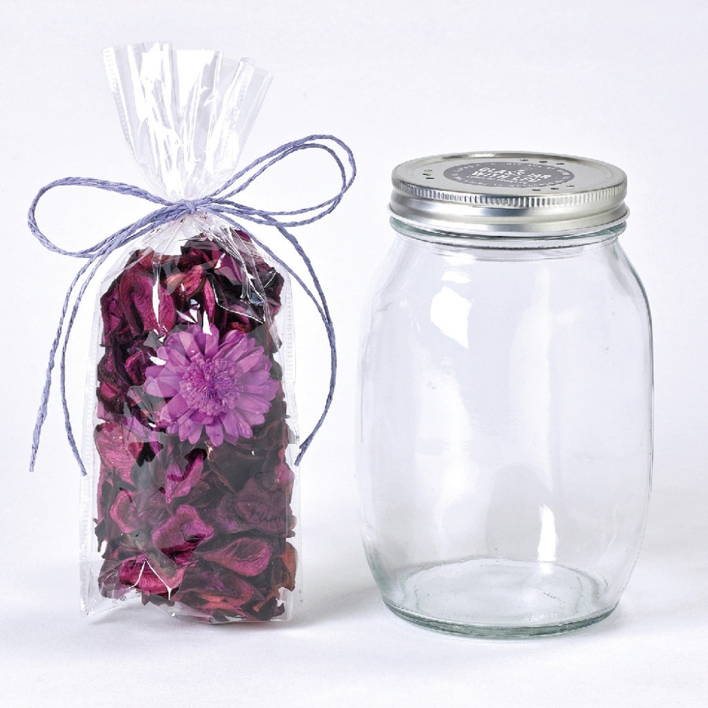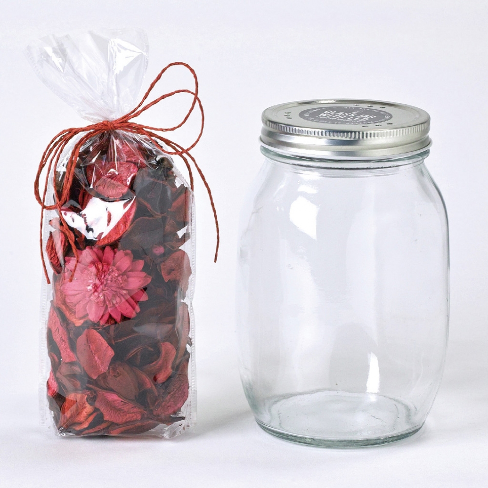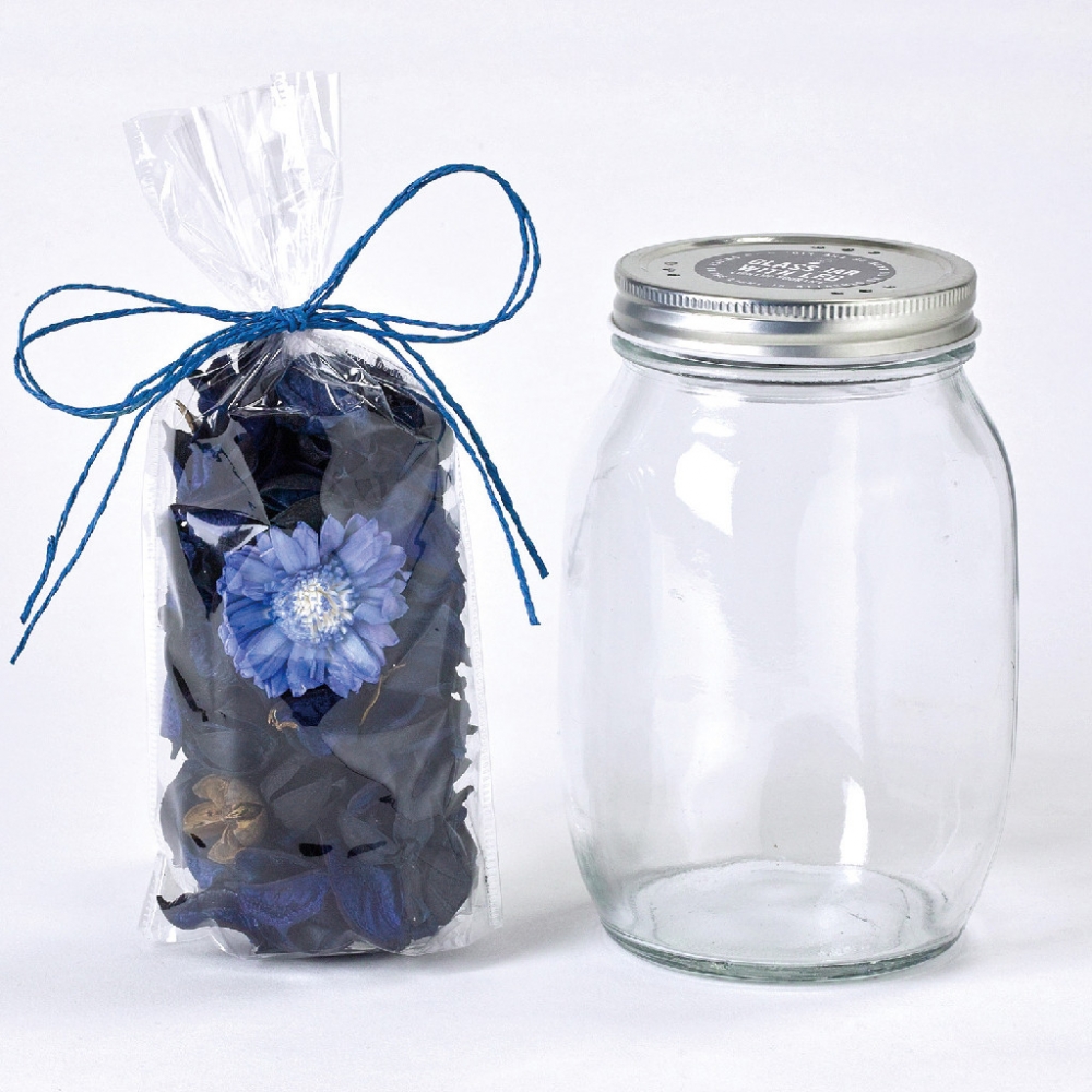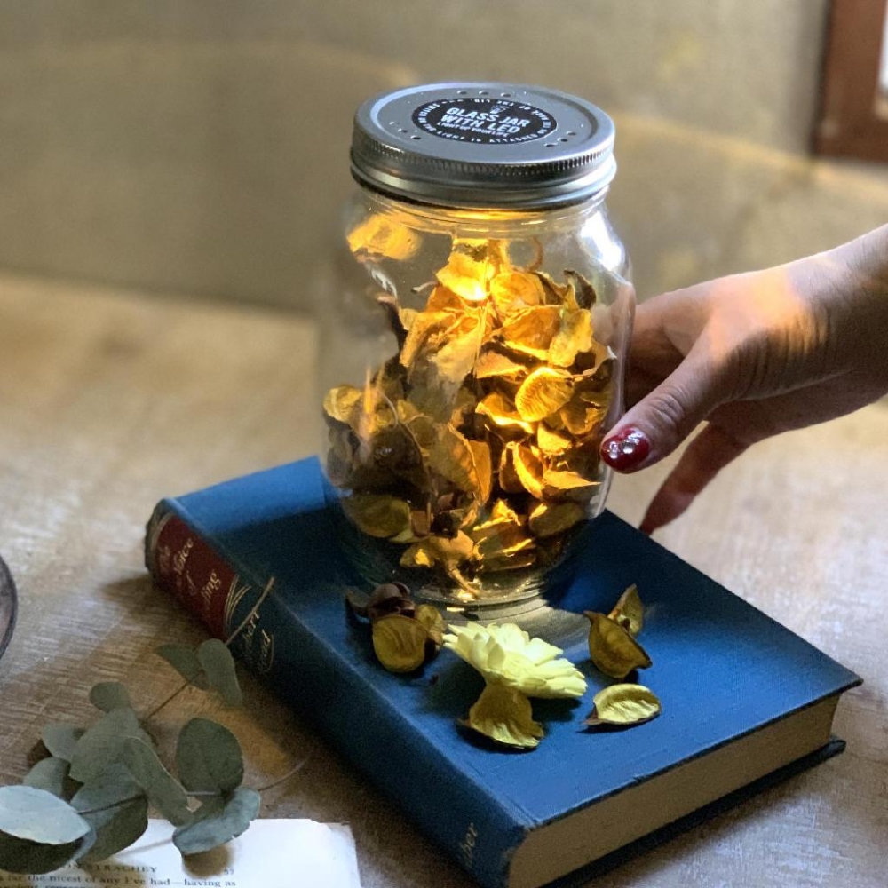 円ポプリとガラスジャーのセットアイテムです。クリアバッグに入っているポプリをガラスジャーに入れ替えると、ジャーの蓋に開けられた穴から香りが広がります。そのまま使えばポプリジャーとして素敵なインテリアに、蓋に取り付けられたLEDをONにすれば間接照明のような雰囲気たっぷりのランプに。1つのジャーでさまざまな使い方を楽しめるおしゃれなインテリアです。