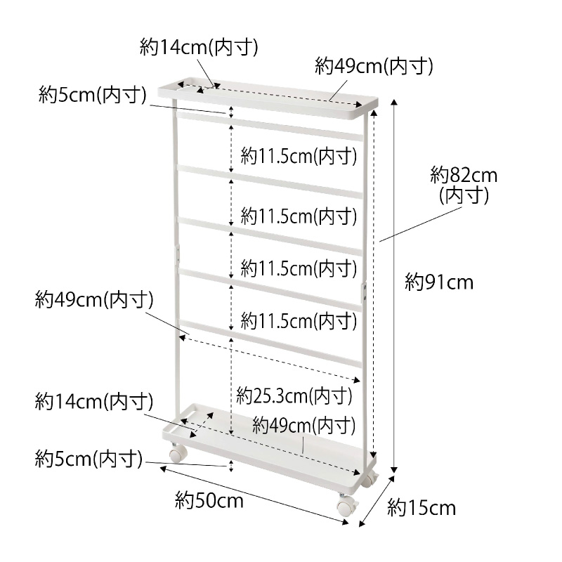 | サイズ | 外寸:約幅500×奥行150×高さ910mm(キャスター含む) |