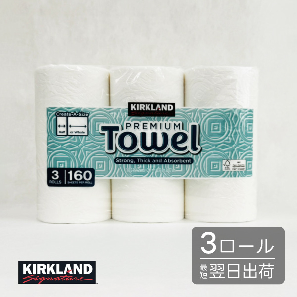 カークランドシグネチャー ペーパータオル 160シート×3ロール。
