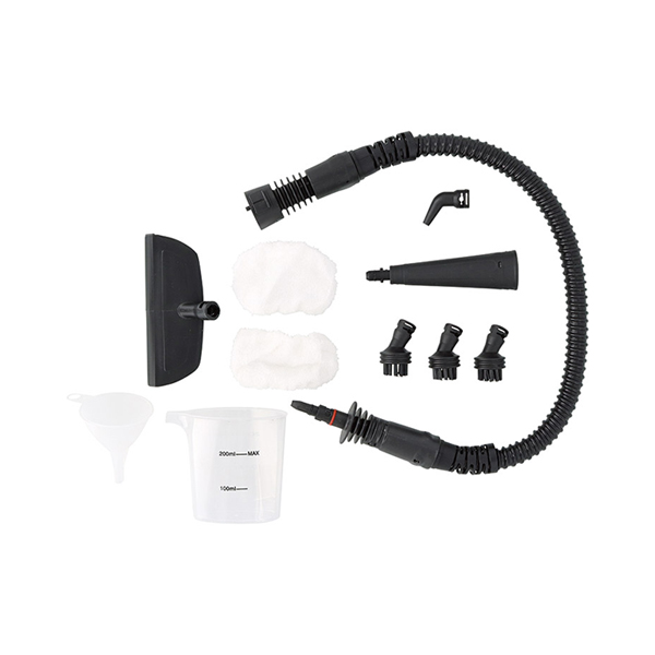 | 内容 | 本体(約115×265×207mm)・ストレートノズル・延長ホース・アングルノズル・窓用アタッチメント・ジョウゴ・メジャーカップ×各1、ブラシ×3、布カバー×2 |