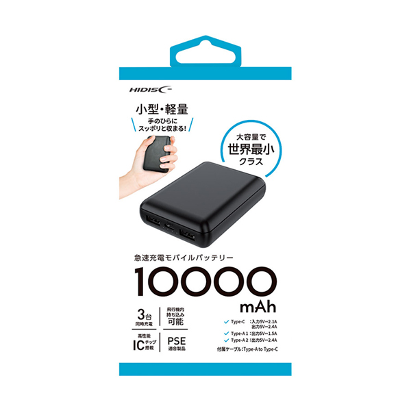 HIDISC モバイルバッテリ10000mAh(ブラック)|インテリア・雑貨ならPIARY(ピアリー)