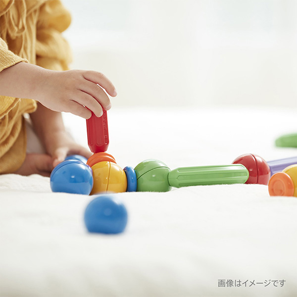 STICK-O(スティック・オー)は、ひとりでもできることが増えたなと感じる1歳半ごろにぴったりの「マグ・フォーマー」の姉妹ブランドのブロックです。小さな手でも握りやすく、磁石で瞬時にくっつく。できた!のくり返しが満足感と達成感を生み出します。あそびを通して日常生活の動作を獲得する時期に、子どものあそびが変化するプロセスを、大人も一緒に楽しんでください。
