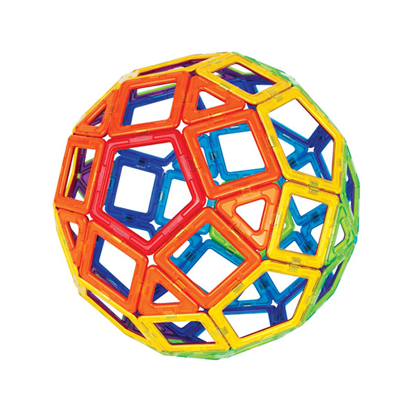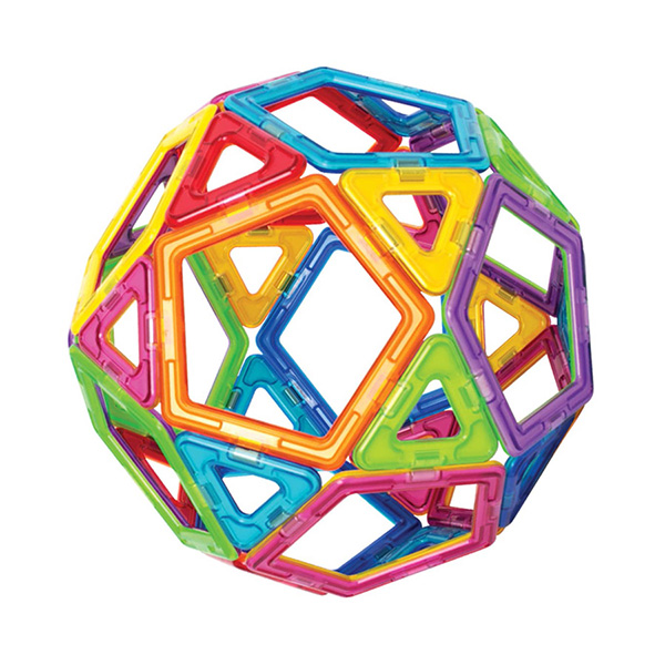 基本の形である正三角形と正方形に、五角形が入ったセットです。オリジナル日本語あそび方冊子付き、62ピース入りです。シリーズのほかのセットと組み合わせればステップアップして長く遊べ、「はじめてのマグ・フォーマー」におすすめです。