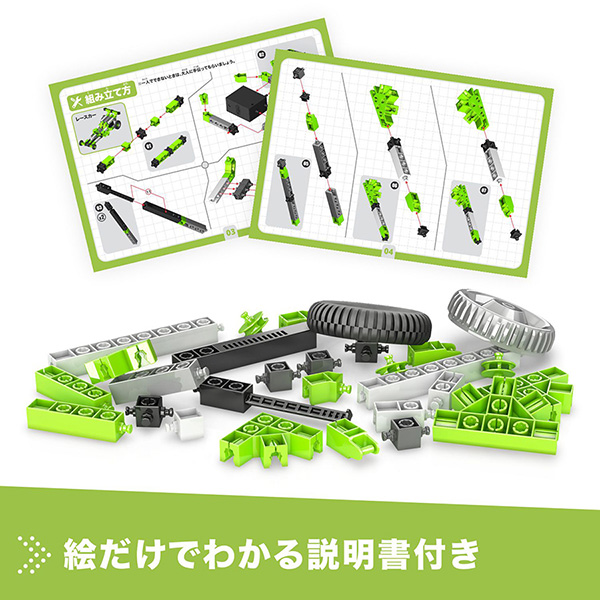 6歳のお子様が楽しみながら完成させられる丁度いい大きさのパーツで、組み立てるたびカチッと音のなる心地よさが魅力のブロック。作った模型は走らせて遊ぶことが可能です。好奇心を刺激するテーマと、自分で組み立てて完成させる楽しさが、ものづくり(エンジニアリング)への興味を引き出します。「もっと作りたい!」を育てるエンジニアリングブロックです。