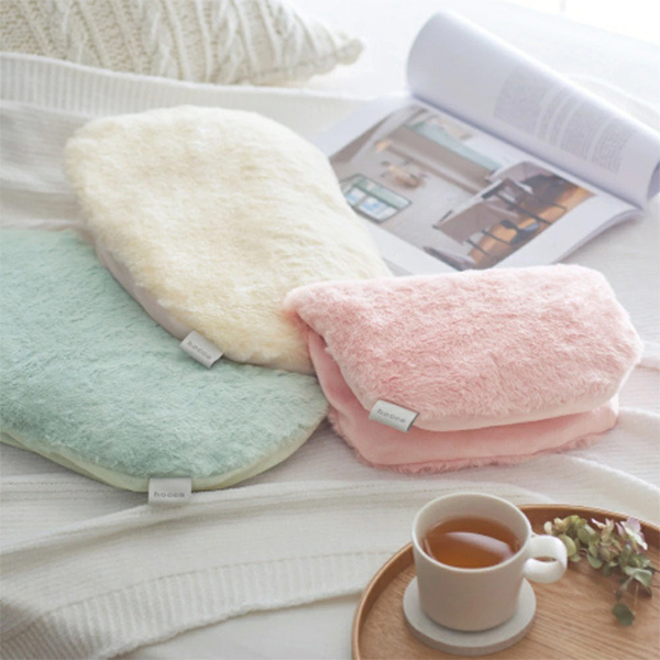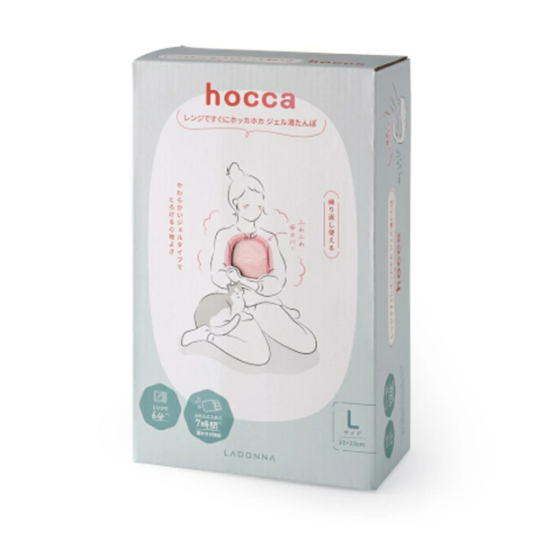 電子レンジで温めて使うジェル湯たんぽ「hocca」Lサイズは、やわらかく体にフィットして広範囲をじんわり温めます。
