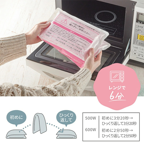 専用布カバーから取り出し、レンジで加熱してご使用ください。