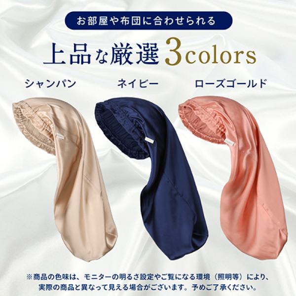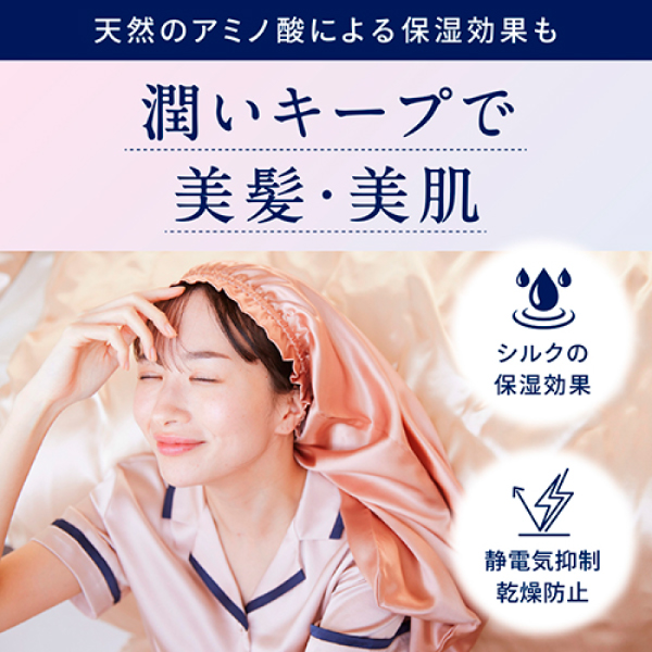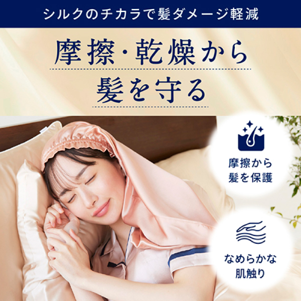寝ながらヘアケアできるシルクナイトキャップです。かぶって寝るだけでツヤツヤに!ダメージ髪からサラサラの美髪に導きます。