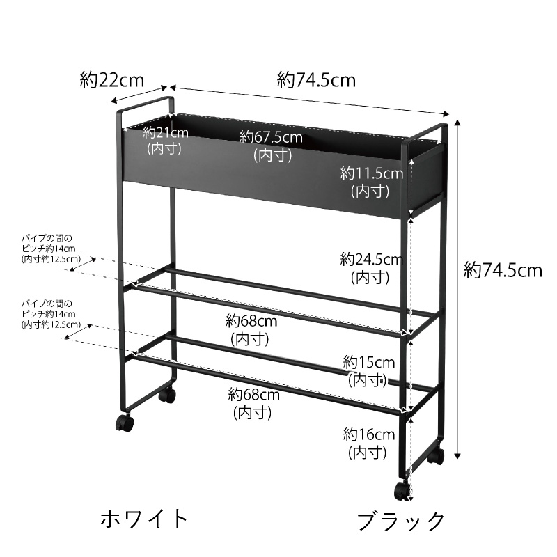 | サイズ | 約幅74.5(キャスター含まず:70)×奥行22×高さ74.5cm |