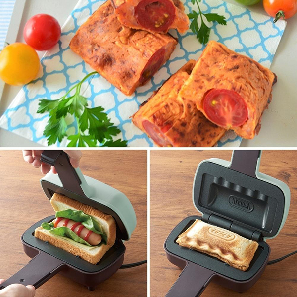 一枚の食パンを折りたたんで作る“ハーフホットサンド”専用の電気ホットサンドメーカー。