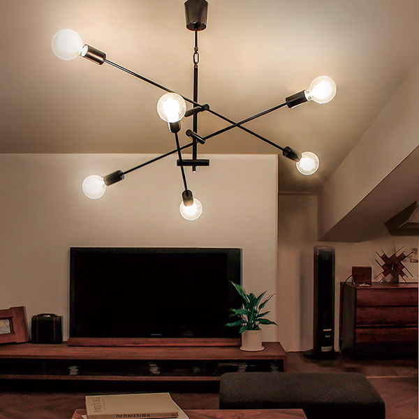 6つの光を自由な高さに角度調整できます。明るさが必要な場所に光を当て、自分好みに光をアレンジできます。迫力のあるサイズ感なので、広めのリビングやワンルームにおすすめです。