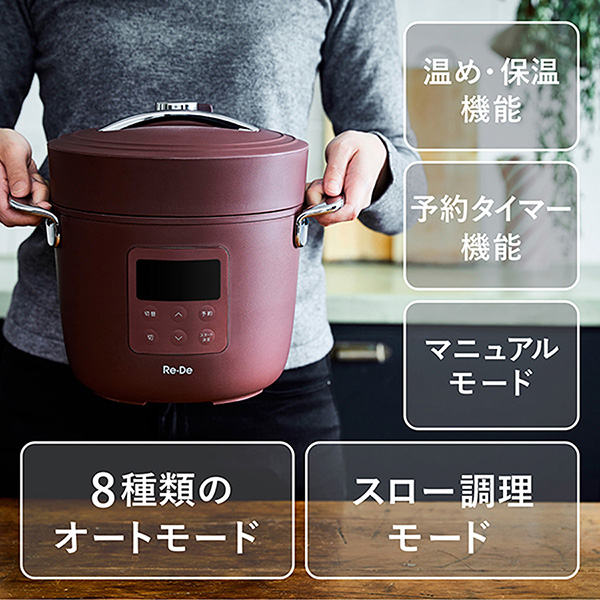 【5%OFF】【送料無料】Re・DePot 電気圧力鍋 レッド 2L|インテリア・雑貨ならPIARY(ピアリー)