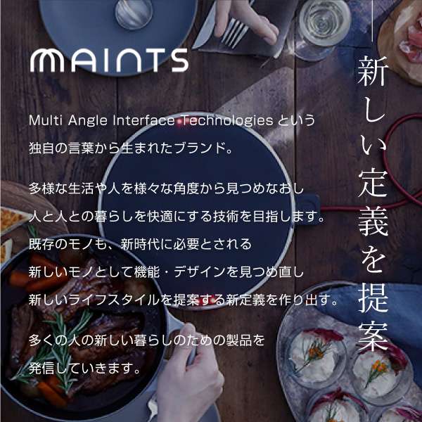 マインツは「Multi Angle Interface Technologies」という言葉から生まれたブランドです。多様になっていく人やライフスタイルをさまざまな角度から見つめなおし、人と人との暮らしを快適にする技術の接点(Interface)を目指します。
