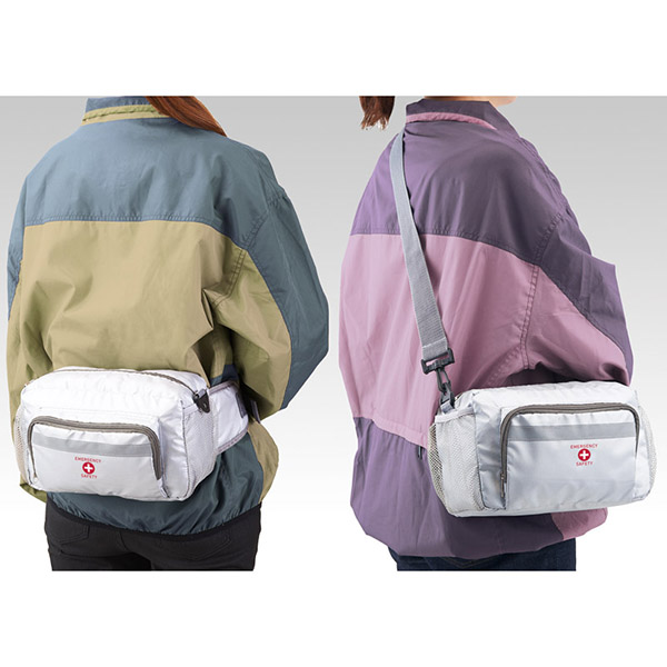 災害・非常時に両手を空けて避難することが出来るショルダー&ウエストタイプの2WAYバッグに防災グッズをセット。非常用トイレや、ライトなどを含み、コンパクトで運びやすくなっております。