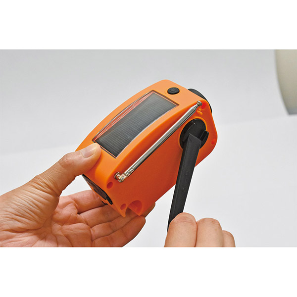 小さいけれど「もしも」に頼れる1台4役。普段使いも非常時も活躍する多機能ラジオ。●AM/FMラジオ:使いやすいアナログチューナー。ワイドFM対応。●懐中電灯:明るさ67ルーメン相当。頼もしい明るさです。●蓄電池:2000mAhの蓄電池を搭載。スマートフォンの充電も安心です。●音楽再生:SDカードに保存したMP3ファイルの再生に対応。●3WAY充電:USB/手回し/ソーラーの3通りの充電方法に対応。●大音量の内蔵スピーカー:大音量の3W出力。アウトドアにも最適。●イヤホン端子搭載:周囲に配慮しながらラジオ・音楽を聴くことができます。