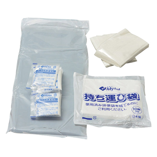 | 内容 | 排便袋・抗菌性凝固剤・持運袋×各10、ポケットティッシュ×2 |