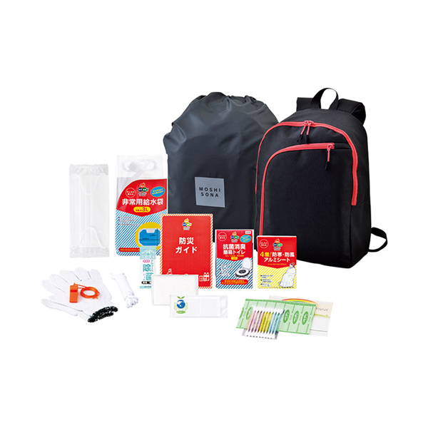 | 内容 | MOSHISONA(R)デイバッグ(約420×290×150mm)×1、4層!防寒・防風アルミシート・防災ガイド・軍手・ロープ(3m)・笛・抗菌消臭簡易トイレ・非常用給水袋(約3l)・ポケットティッシュ・個装マスク・除菌ジェル(約15ml)・eco便利バッグ・レインカバー×各1、絆創膏×5、綿棒×10 |