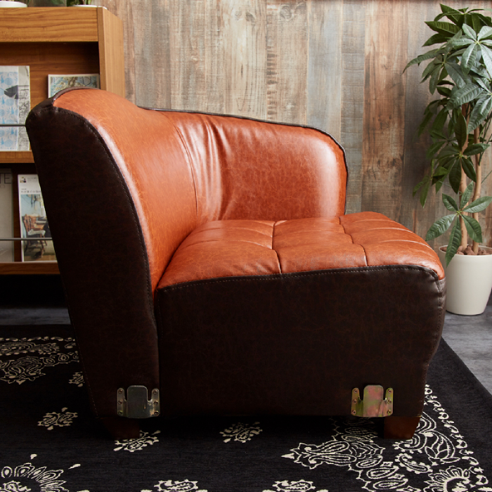 落ち着いた色合いのバイカラーと艶のあるレザー素材がおしゃれな大人ソファ。