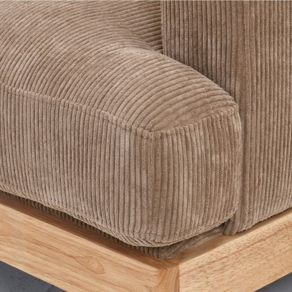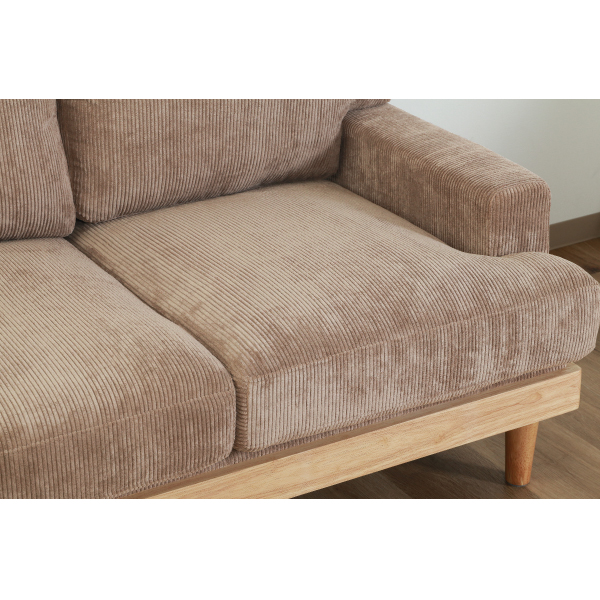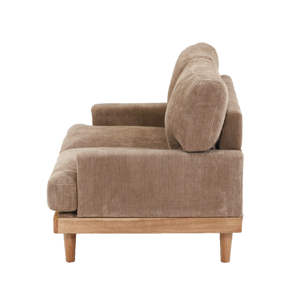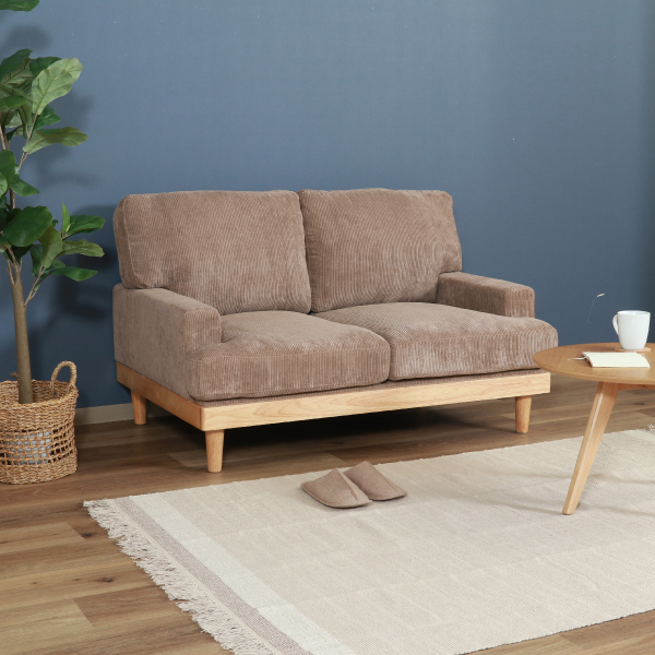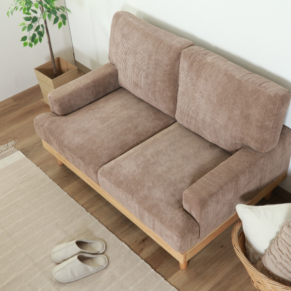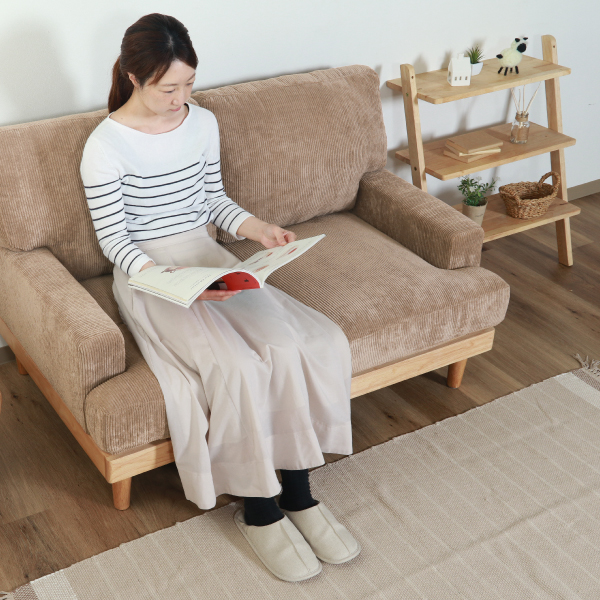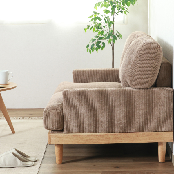 温かみのあるコーデュロイのソファです。コーデュロイ生地とフレーム部分のナチュラルな天然木の組み合わせがおしゃれ♪クッションやひざ掛けなどで色味を足して自分好みにして楽しむこともできます。