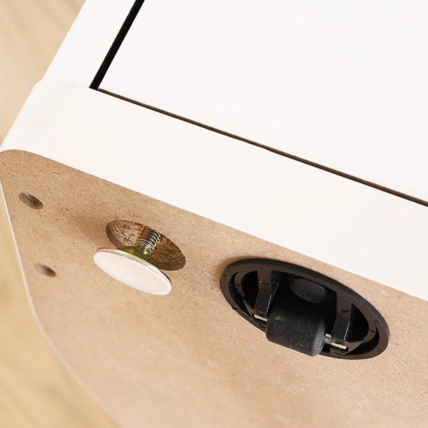 | 材質 | ■本体:プリント紙化粧繊維板 ■表面:プリント紙化粧繊維板 ■キャスター:ナイロン ■スモークガラス:熱処理4mm ■左右側板・バックボード:ソフトフォーム加工 ■引出前板:ラッピング加工 |