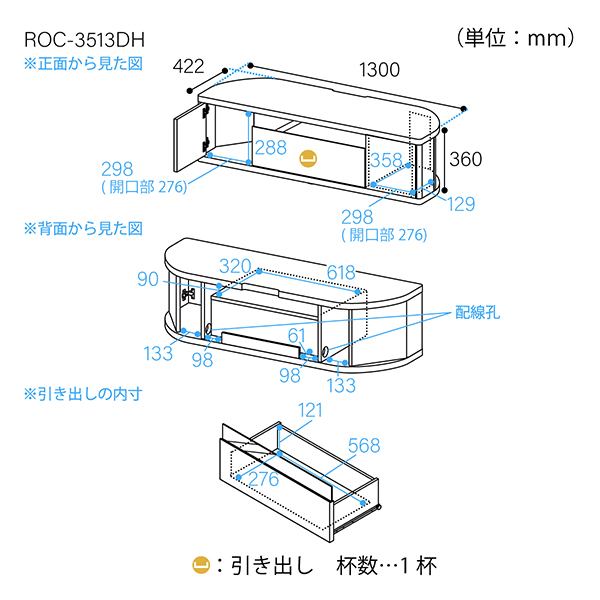 | サイズ | 幅1300×奥行422×高さ360mm |