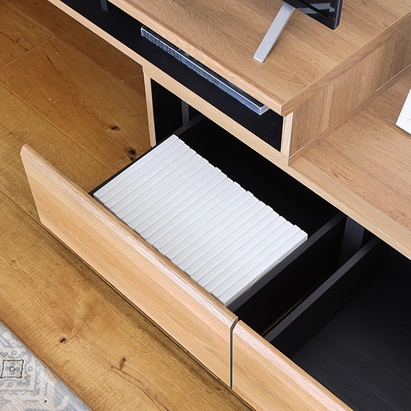 | 材質 | ■本体:プリント紙化粧繊維板 ■表面:プリント紙化粧繊維板 ■ディバイダー(配線こぼれ止め用):スチール ■ディバイダー(配線こぼれ止め用):焼付粉体塗装加工 ■上台天板・扉:ソフトフォーム加工 ■引出前板:ラッピング加工 |