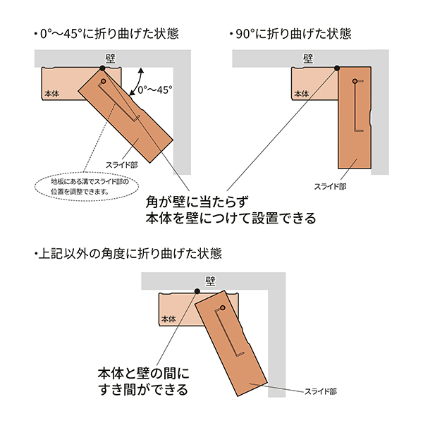 横に伸ばしたり、角度を変えたりしてお好みの形で使うことができる伸縮式のテレビ台。55V型までのテレビに対応できます。組立時にスライド向きの左右が選べます。
