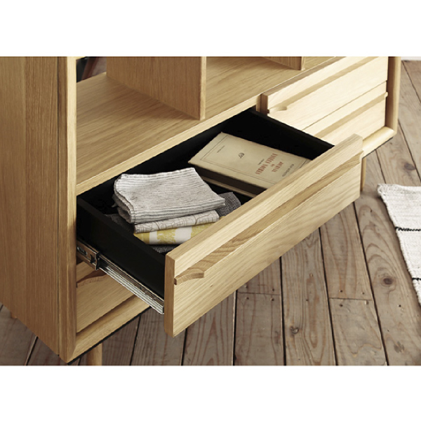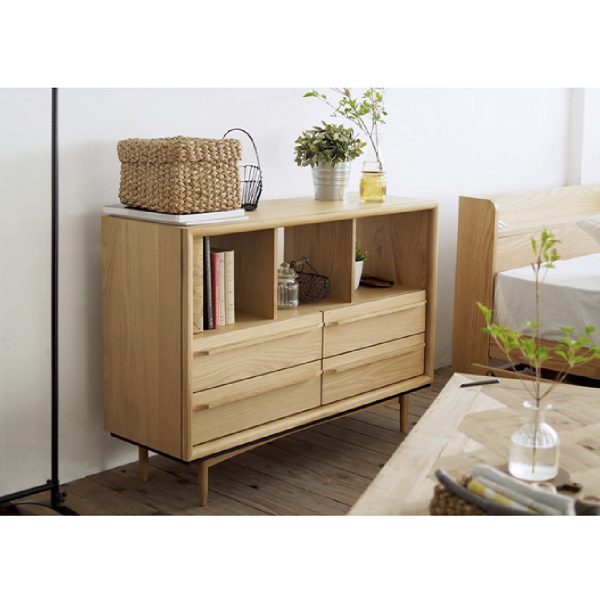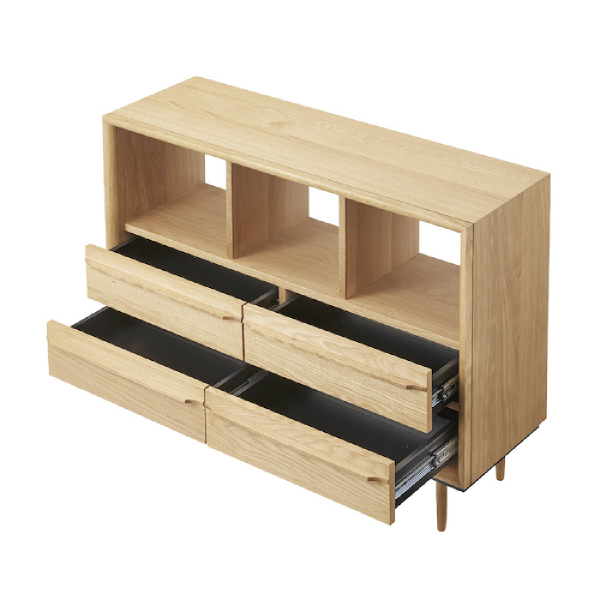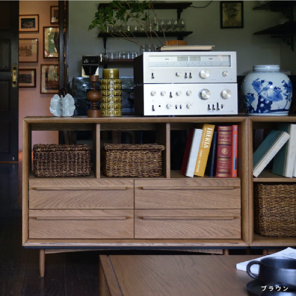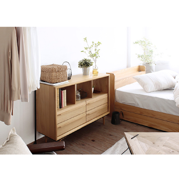 ローチェストなので空間に圧迫力を与えずスッキリとみせてくれます。4杯の引き出しで収納力も抜群!カテゴリーごとに収納でき、手前までしっかり引き出せて奥の物が取りやすくなっているのも魅力的。