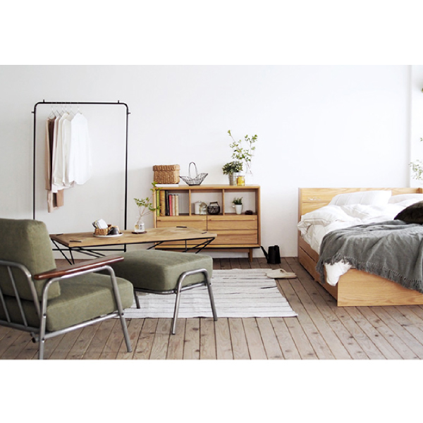 細見の脚で北欧風のおしゃれなデザインとなっています。自然を感じさせ温かみのある風合いは、お部屋に統一感を持たせやすくシンプルなのでミッドセンチュリーモダン、ジャパニーズモダンなど様々な雰囲気のお部屋にも合わせられます。