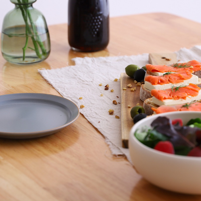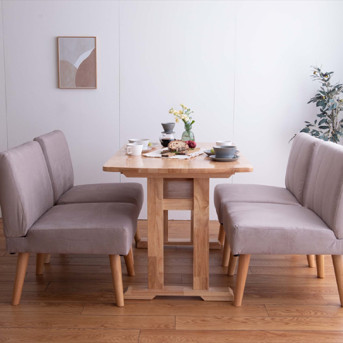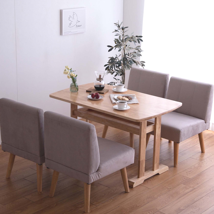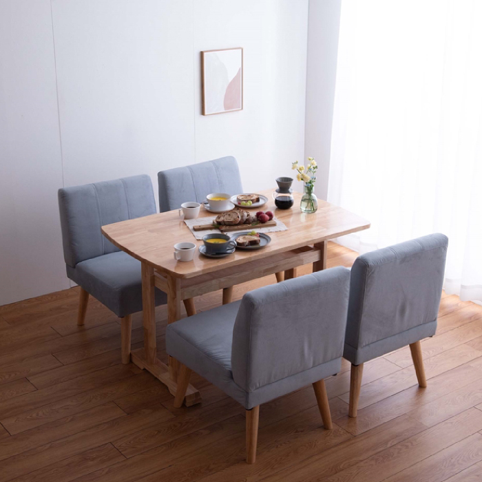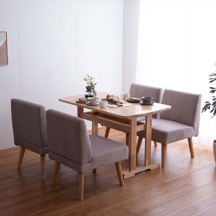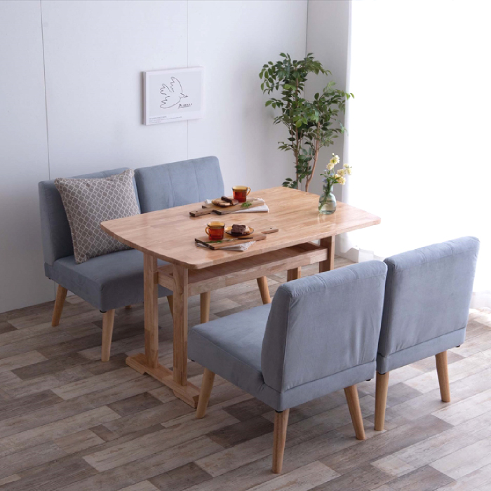 テーブルやソファ脚部には木目が美しい天然木が使用されており、柔らかい印象をお部屋に与えてくれます。ソファをグレードアップさせたい、広いスペースで食事がしたいという方におすすめです!