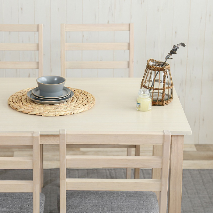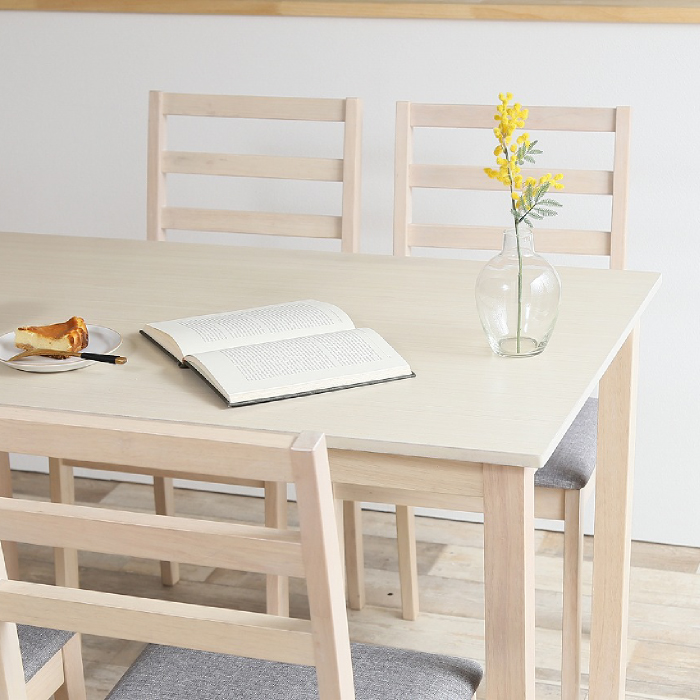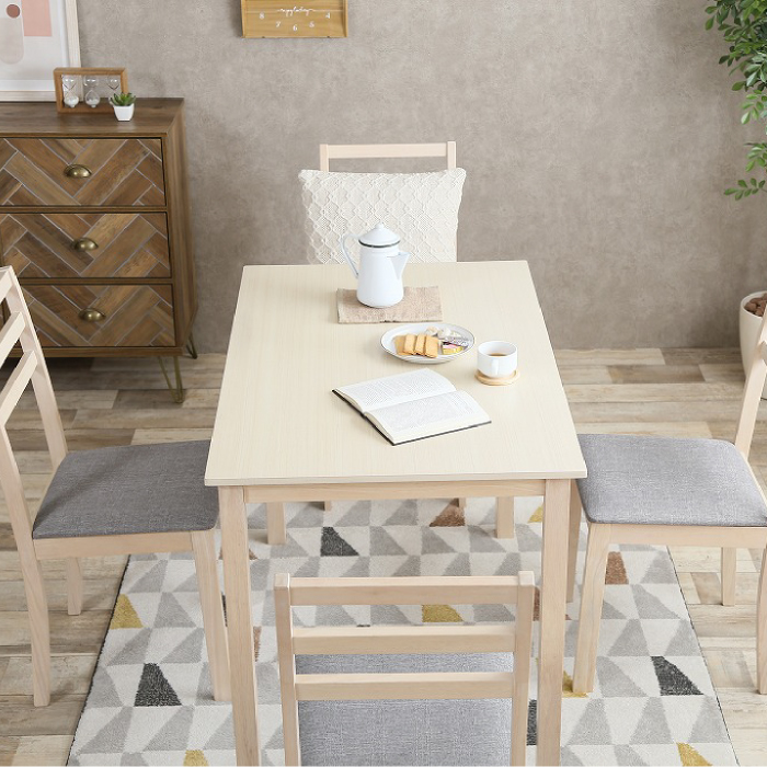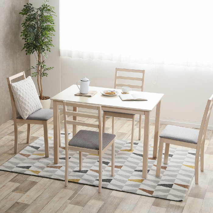 ナチュラルなデザインで、幅広いインテリアに合わせていただけます。特に北欧風の雰囲気がお好きな方におすすめ!シンプルで上品な空間を演出してくれるダイニング5点セット(テーブル+チェア4脚)です。