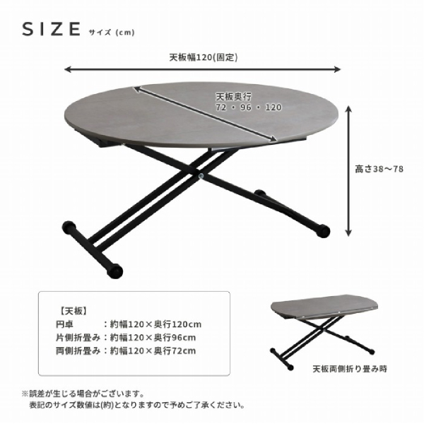 | サイズ | 約幅120×奥行72〜120×高さ38〜78cm |